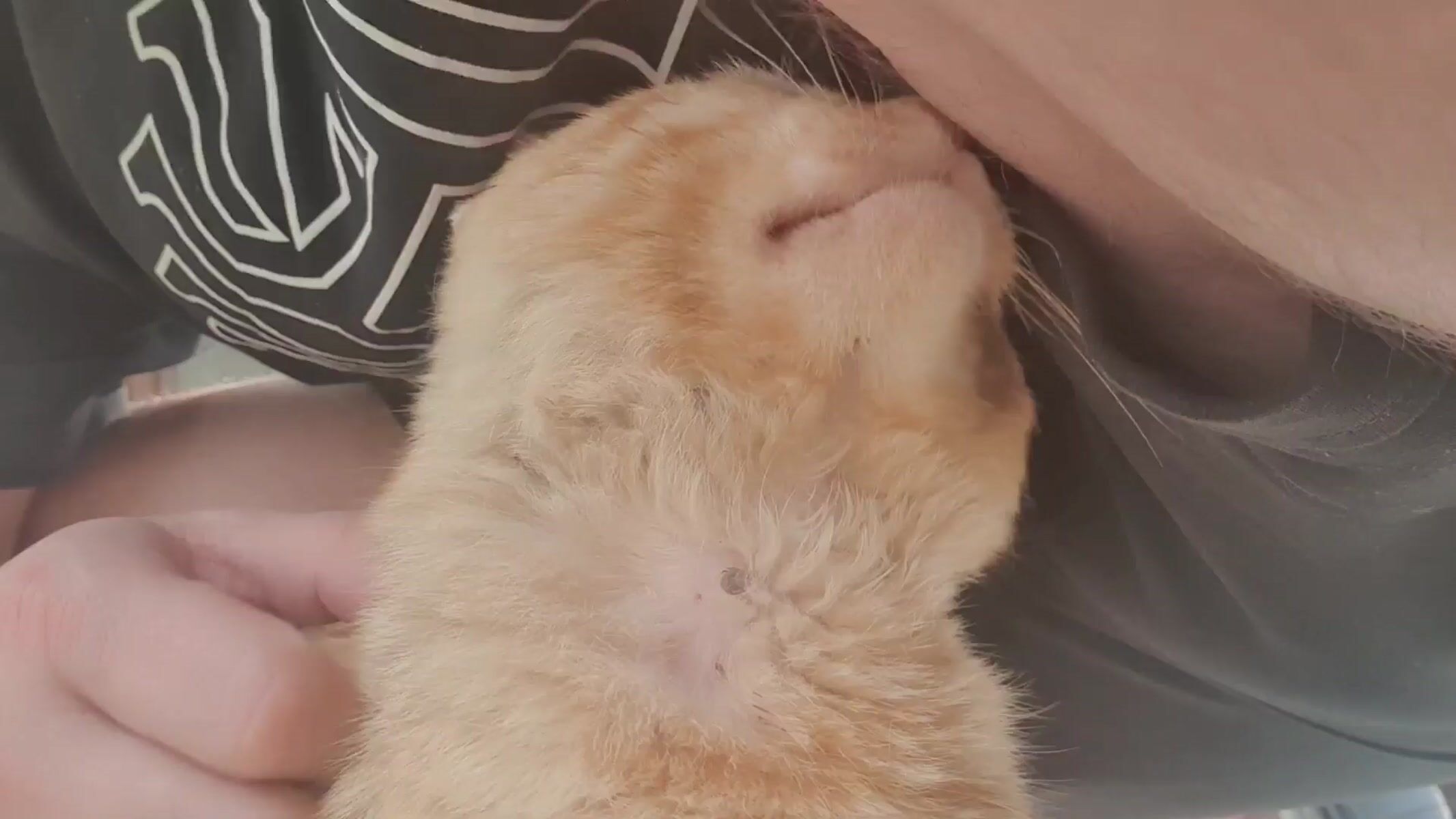 Topics: orange tabby, cat petting, village cat, animal affection, pet interaction, domestic animal, village life, animal, rural, daily life