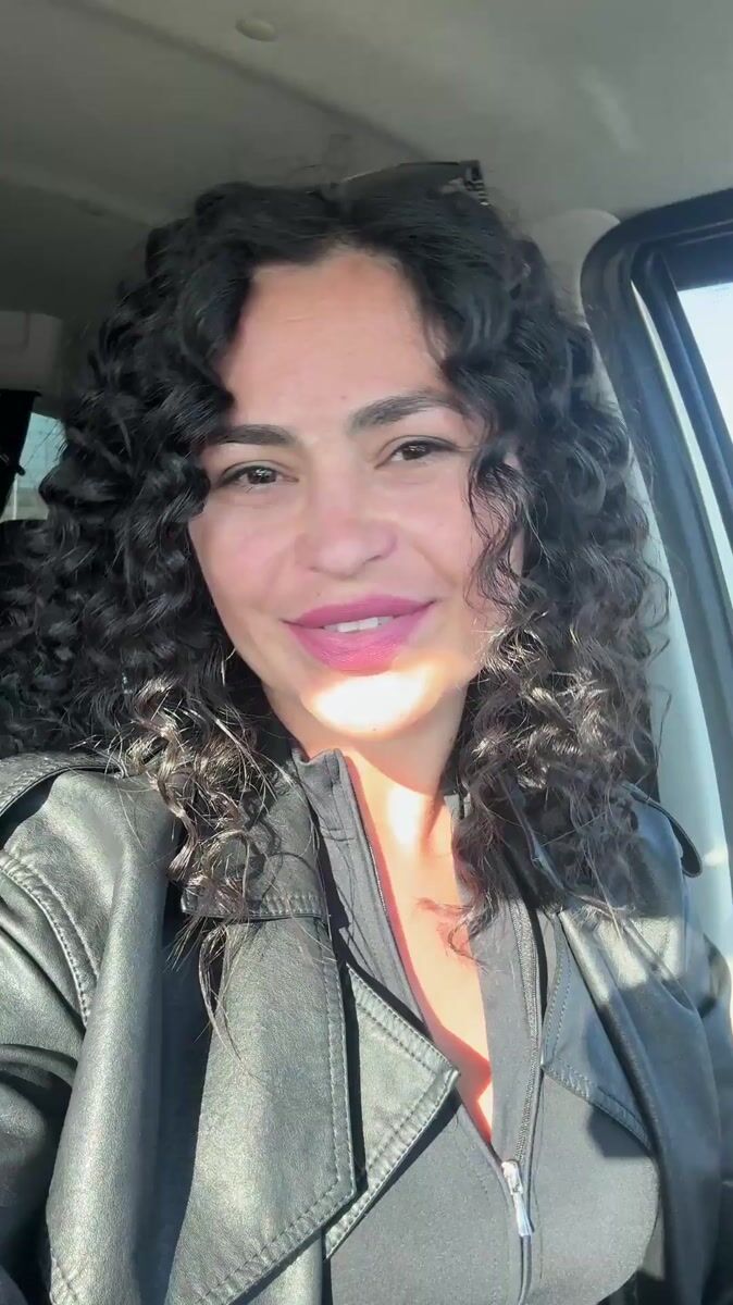 Topics: early morning drive, woman driving, black leather jacket, vehicle travel, russian town, morning commute, transportation, rural russia, daily life, travel