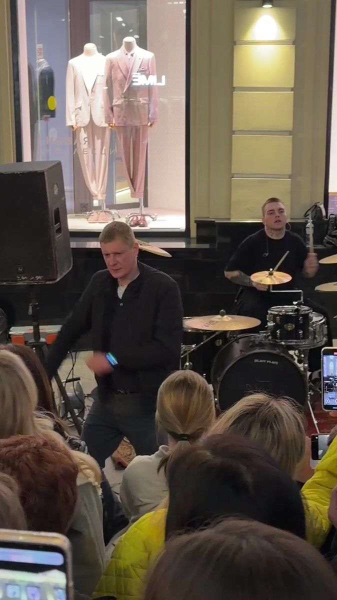 Street drummer draws crowd in Moscow evening performance