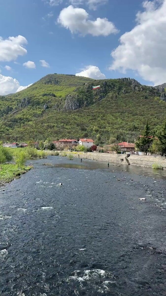 Topics: vacha river, river valley, red roof houses, riverside settlement, rural landscape, water flow, nature, residential, geography, daily life