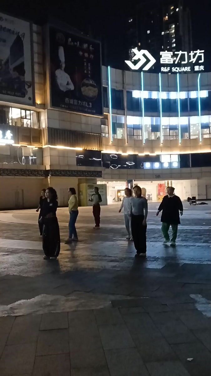Topics: square dancing, electric scooter, plaza activity, evening recreation, public space, urban activity, social gathering, street life, daily life, community