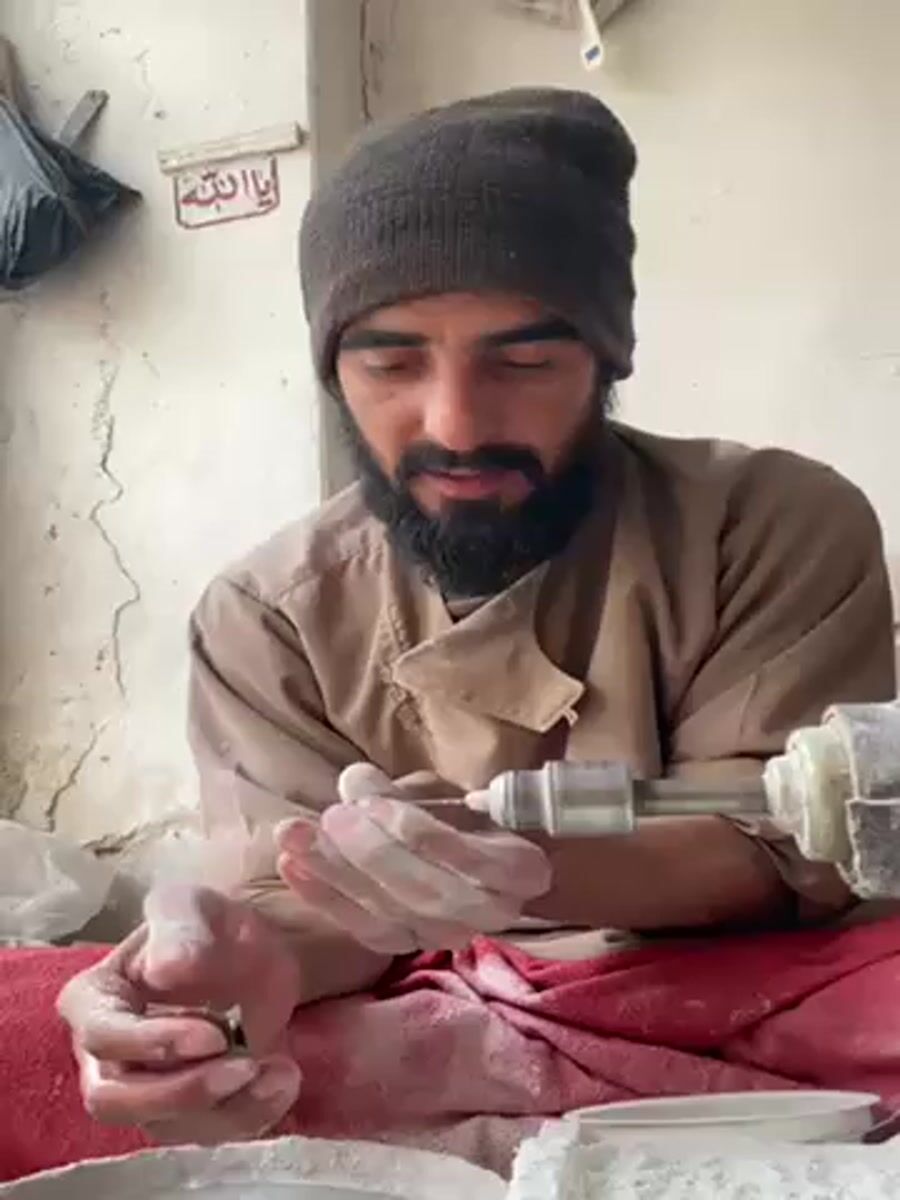 Afghan artisan polishes gemstones in traditional Kandahar workshop