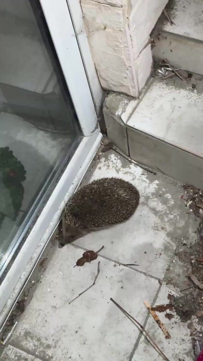 Hedgehog spotted on tiled surface near window in BlagoevgradLocation: Blagoevgrad, Bulgaria4/18/20261 sources from 1 citizen journalistsTopics: hedgehog, tiled surface, window, wildlife, urban animal, residential, nature, daily life, outdoor, animalSource MediaPhoto source: b7240d82