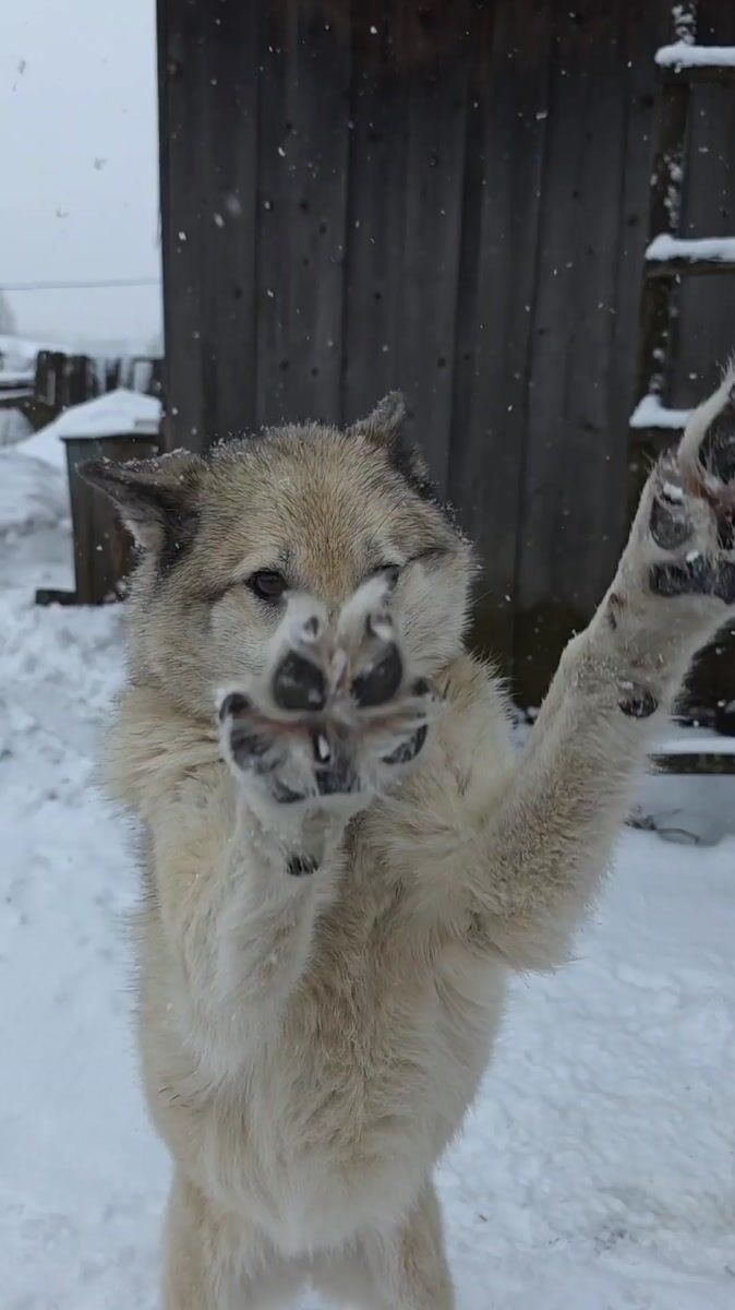 Topics: dog standing, snowfall, animal behavior, pet video, winter weather, rural russia, animal, weather, nature, daily life