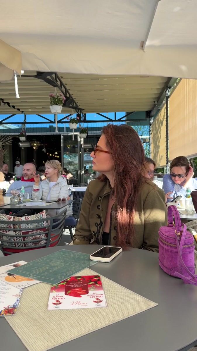 Topics: outdoor cafe, woman portrait, restaurant patio, dining, street scene, social gathering, urban life, leisure, daily life, social