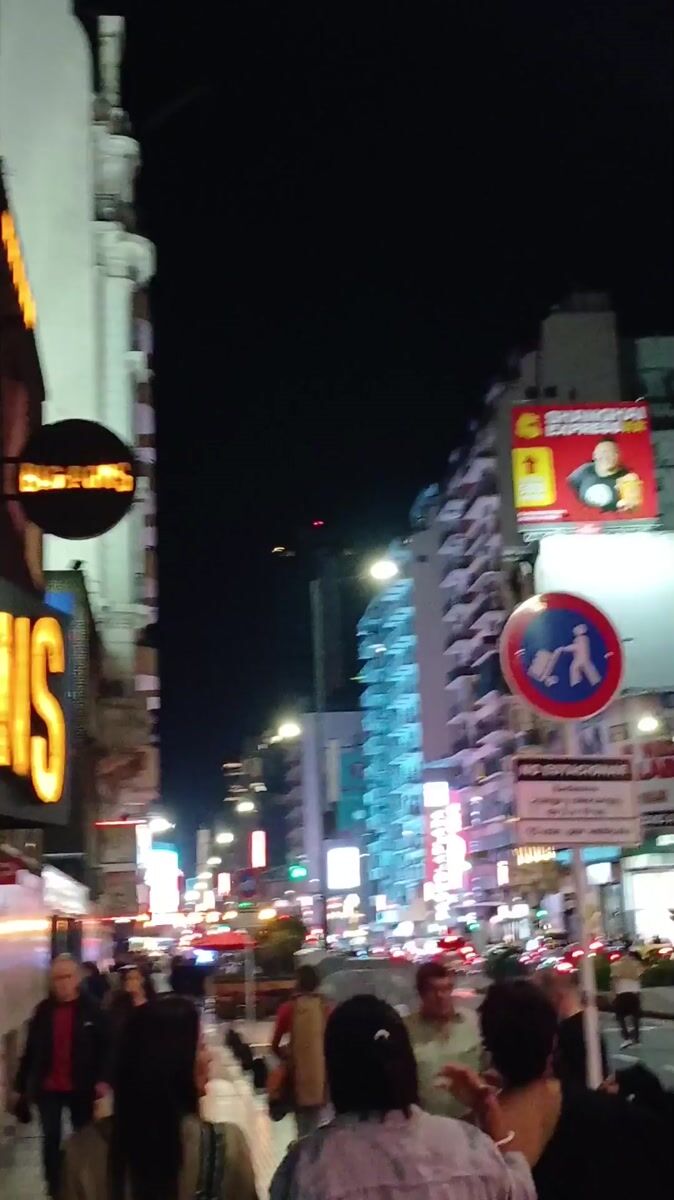 Busy night street activity captured in Buenos Aires
