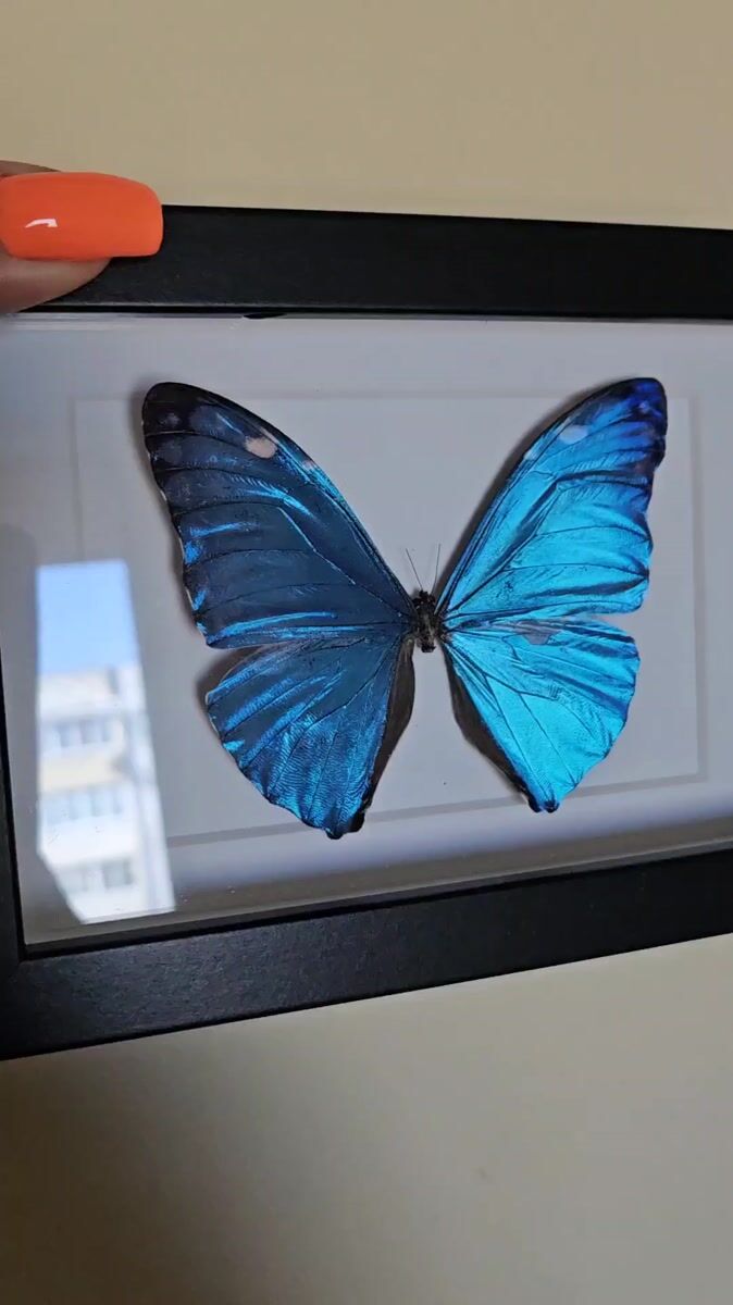 Person displays framed blue butterfly specimen in SofiaLocation: Sofia, Bulgaria4/18/20261 sources from 1 citizen journalistsTopics: butterfly specimen, framed display, collection, insect, display, hobby, nature, personal, indoor, specimenSource MediaPhoto source: 10714fe7