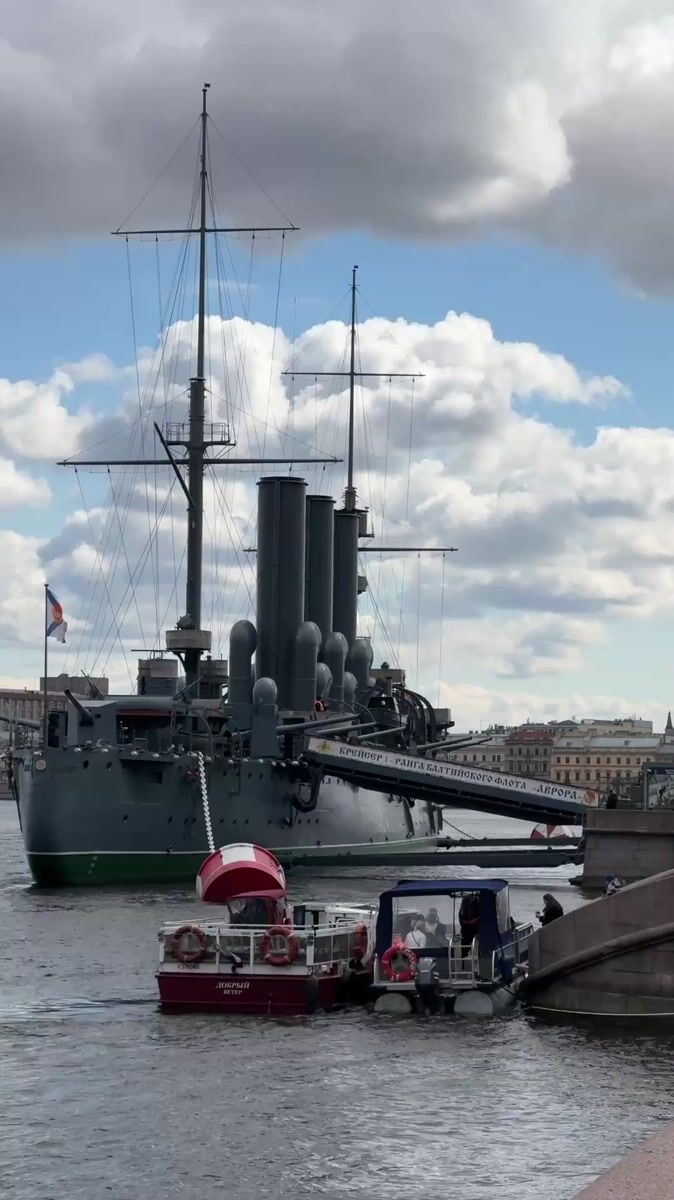 Historic Saint Petersburg landmarks Cruiser Aurora and Smolny Cathedral documented