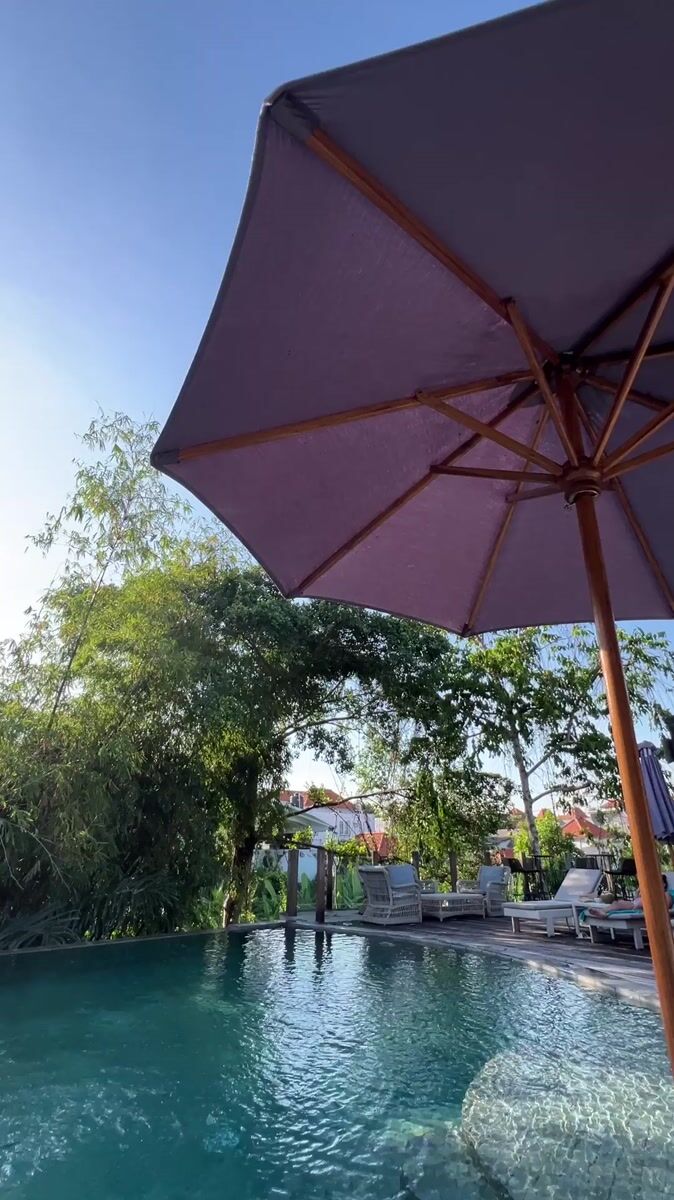 Poolside relaxation captured in sunny North Kuta, Indonesia