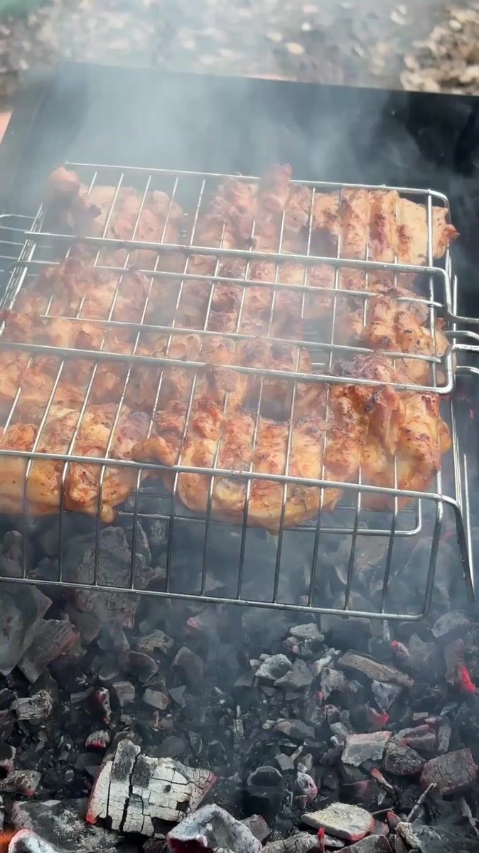Topics: grilling meat, wood handling, outdoor cooking, rural activity, backyard gathering, domestic work, countryside, daily life, rural, social