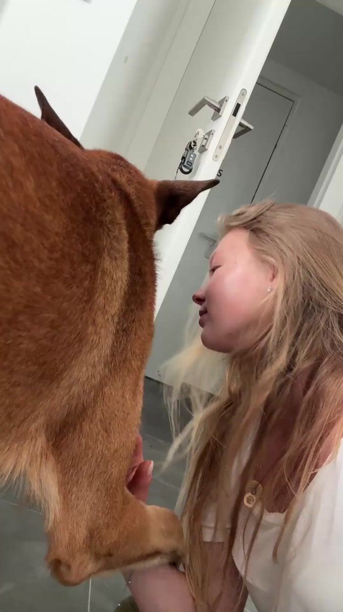 Woman plays with brown dog on floor in ArielLocation: Ariel, Palestine4/17/20261 sources from 3 citizen journalistsTopics: dog play, pet interaction, indoor floor, casual moment, domestic scene, animal behavior, home life, daily life, personal, leisureSource MediaPhoto source: 82a40d5dPhoto source: f09f1407Photo source: 4d970ac1