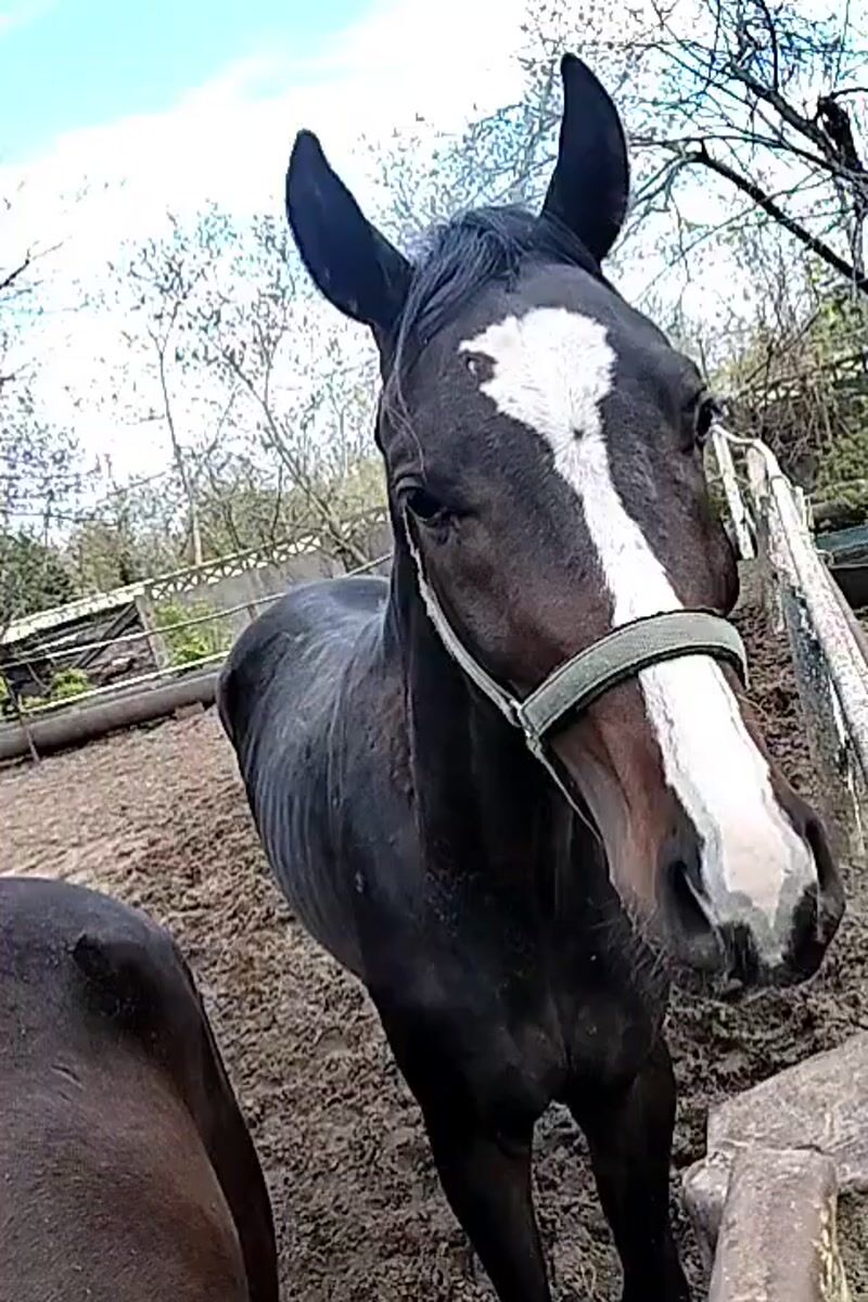 Topics: horse paddock, muddy enclosure, green halter, animal care, livestock, rural, agriculture, daily life, outdoor, ukraine