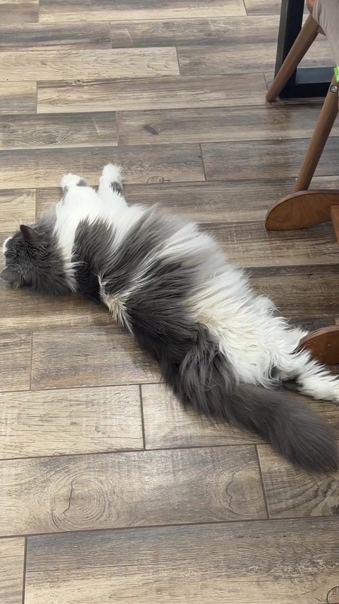 Topics: cat interaction, domestic scene, morning routine, pet owner, home life, indoor activity, domestic animal, daily life, residential, lifestyle