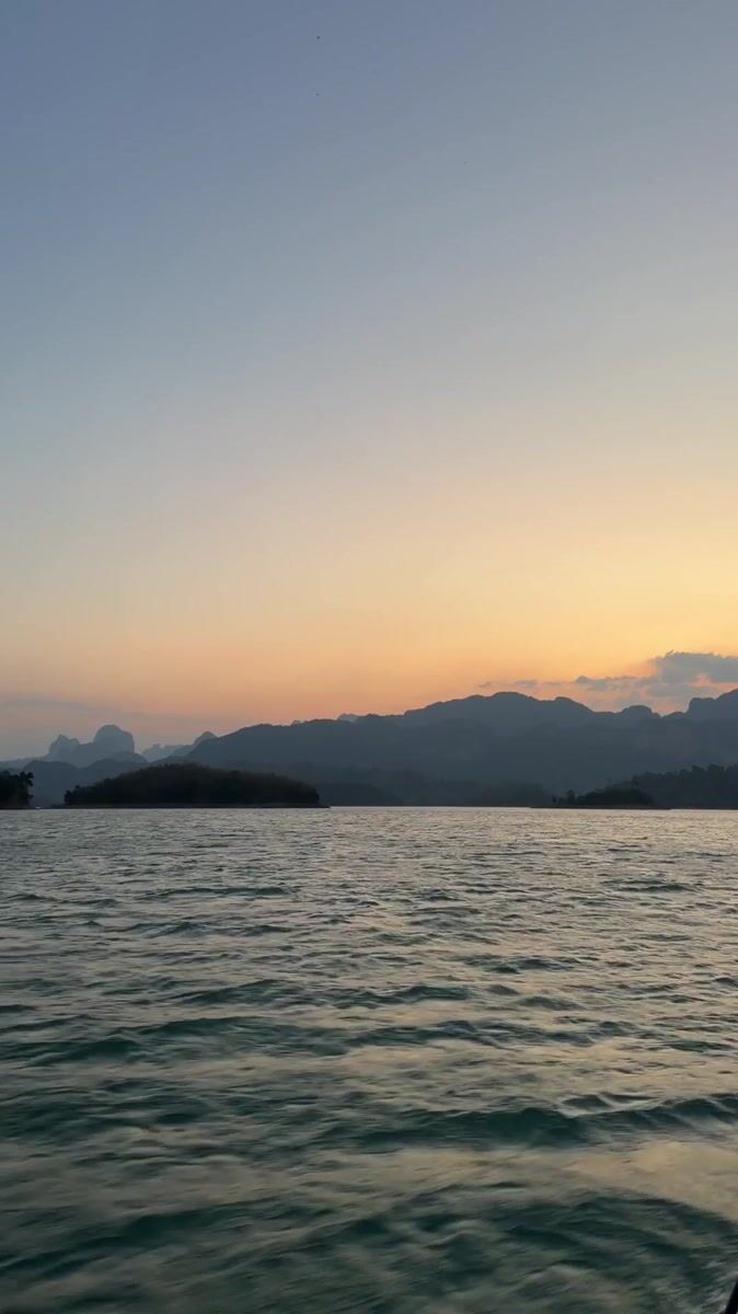 Sunset boat journey documented across Thai lake near Ban Chiao Lan