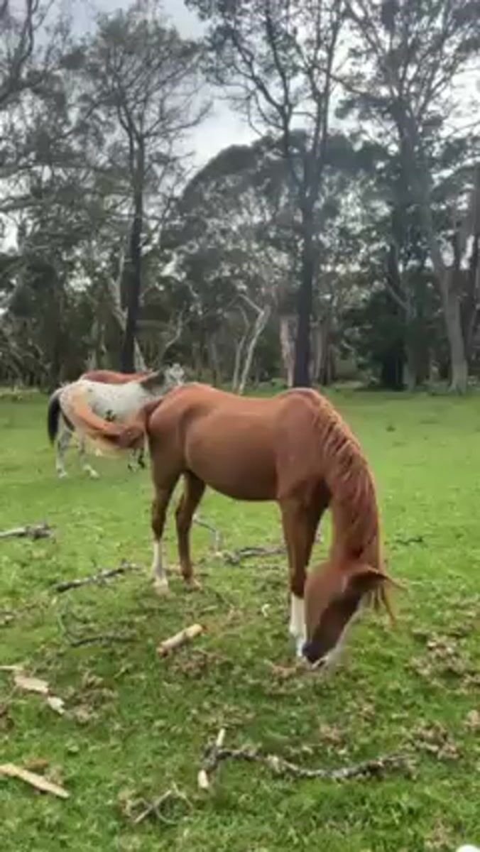 Horses graze peacefully in Australian fields near Stanwell Tops
