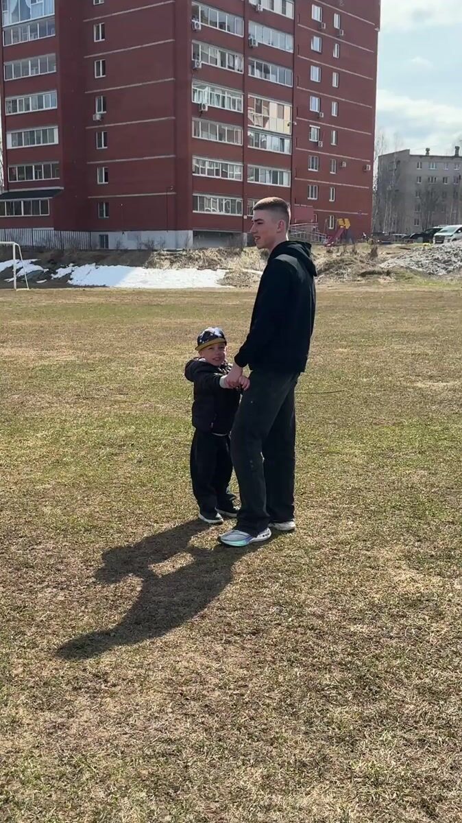 Topics: spring day, grassy field, apartment building, outdoor scene, residential area, family moment, urban landscape, daily life, russian city, springtime