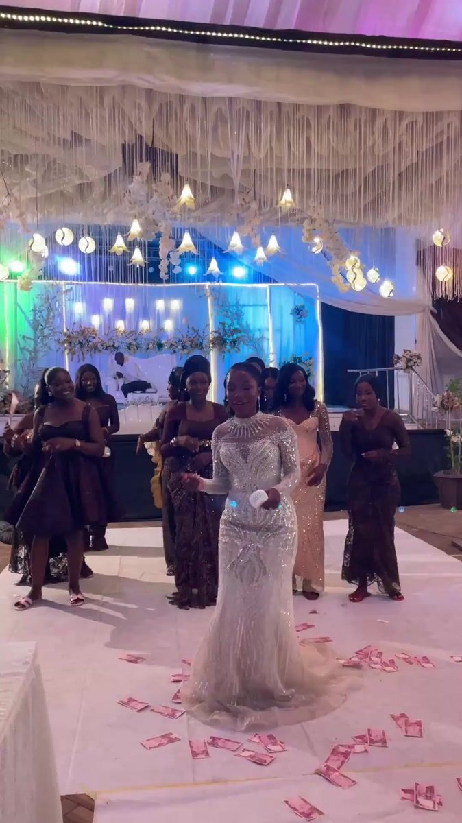 Topics: money scattering, bouquet toss, nigerian wedding, wedding reception, traditional ceremony, celebration, wedding, cultural, social, indoor event