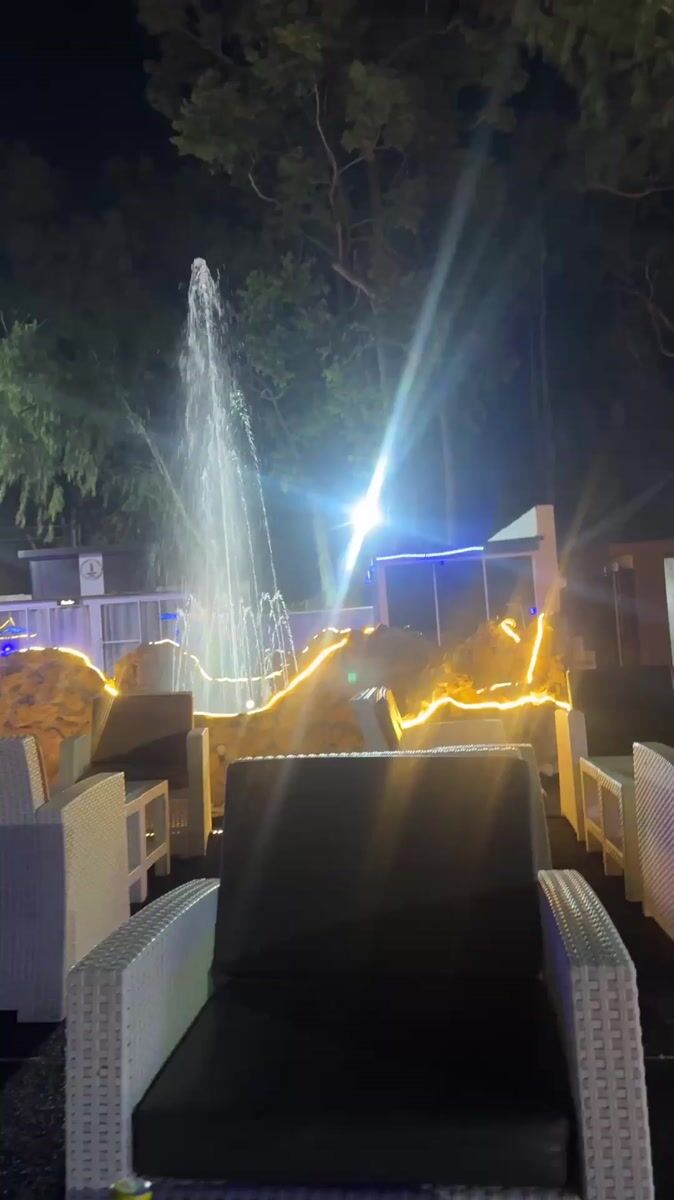 Illuminated fountain operates at night in Barakin Lerawi, Nigeria