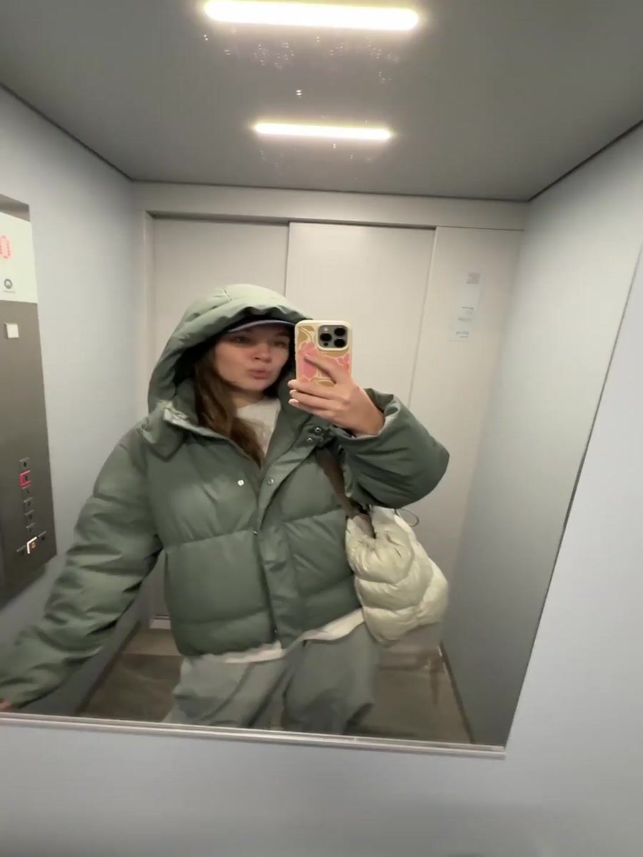 Topics: elevator selfie, puffer jacket, indoor photography, selfie, fashion, urban lifestyle, social media, indoor, daily life, personal
