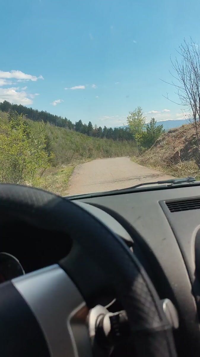 Motorist documents scenic drive through rural Lokorsko, Bulgaria countryside