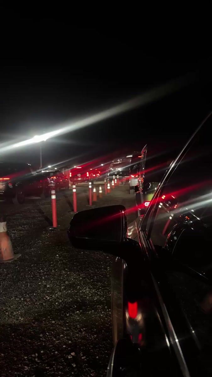 Topics: drive through, traffic queue, night traffic, vehicle lineup, traffic control, automotive, transportation, urban, commercial, daily life