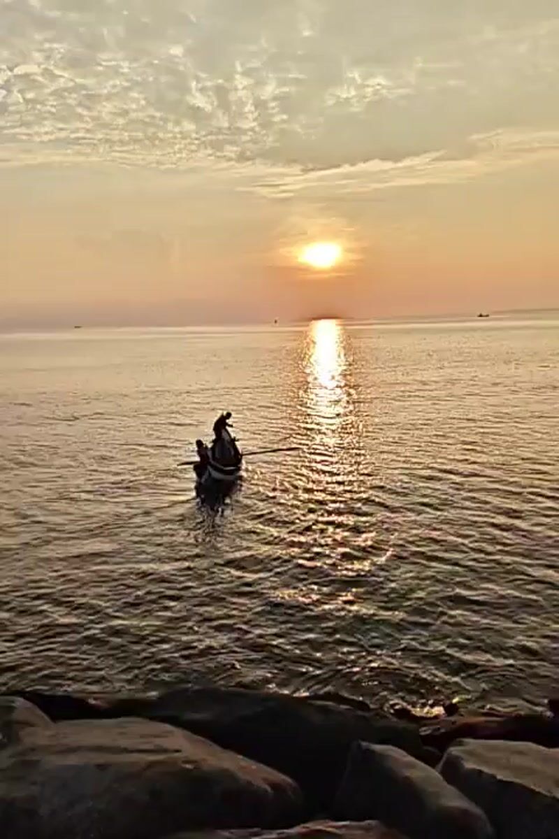 Fishing boat spotted at sunset off Lhokseumawe coast
