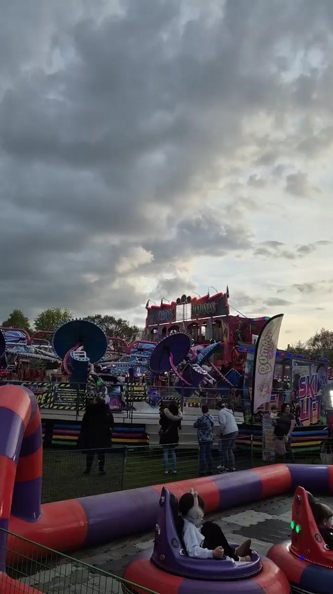 Amusement park visitors enjoy bumper cars and spinning rides in West Suffolk