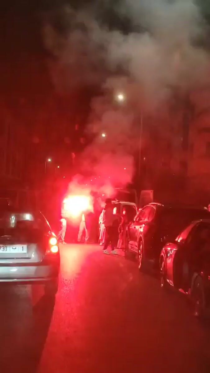 Evening street activity and flares documented in Salé, Morocco