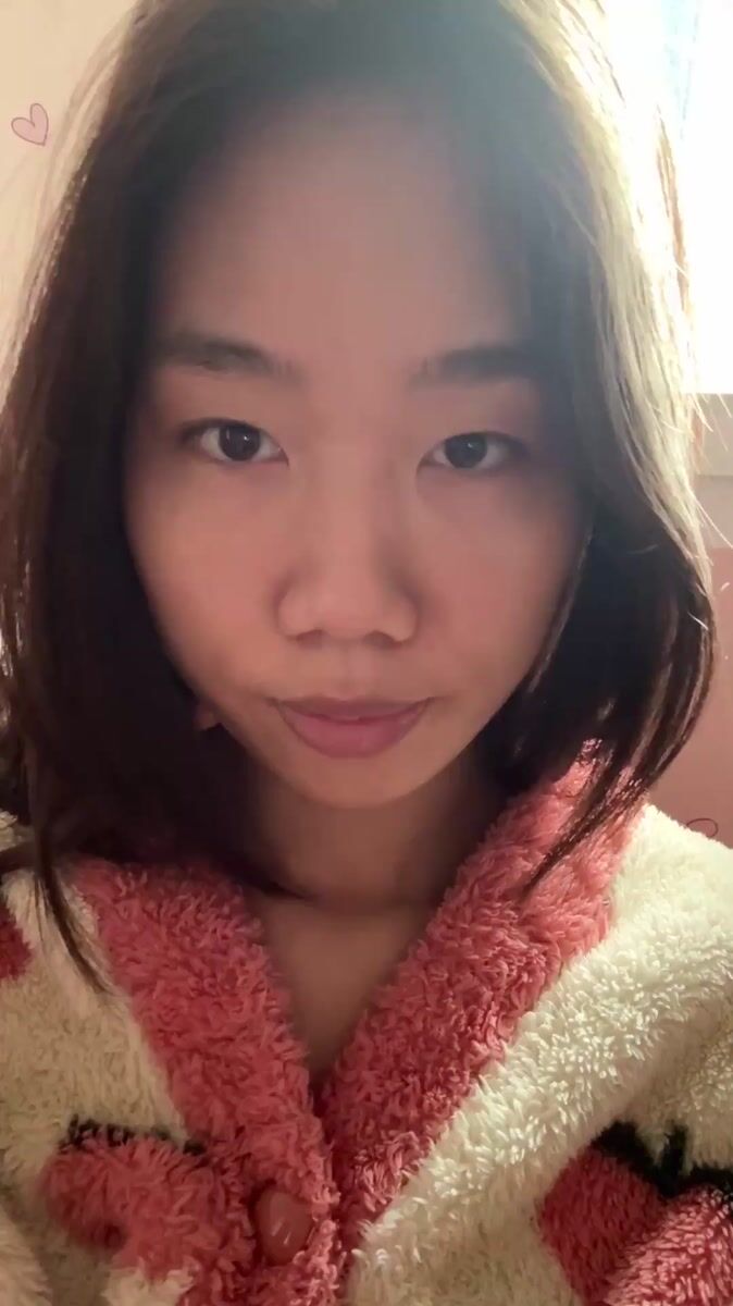 Woman in pink robe drinks juice, takes selfie in Chongqing