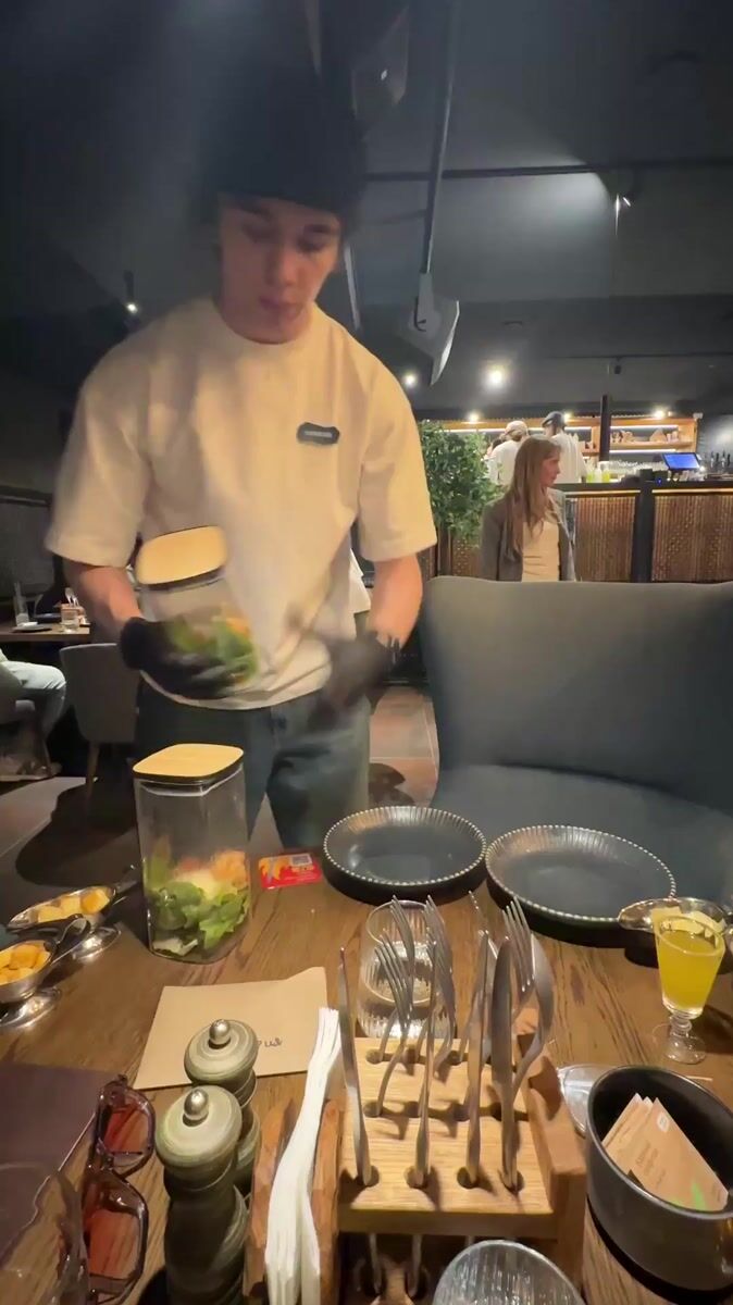 Diner observed at restaurant table in Engels, RussiaLocation: Engels, Russia4/17/20261 sources from 1 citizen journalistsTopics: restaurant dining, table setting, indoor dining, restaurant, dining, food service, hospitality, social, daily life, urbanSource MediaPhoto source: 48774333