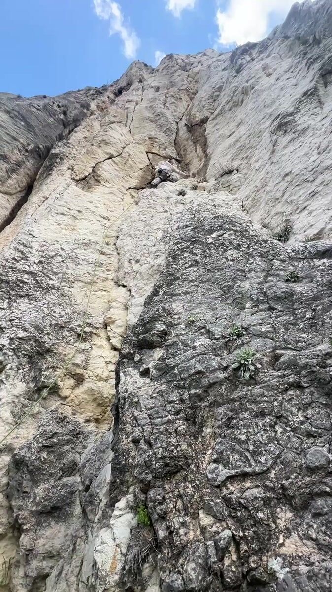 Rock climber scales cliff face in Samovodene, Bulgaria