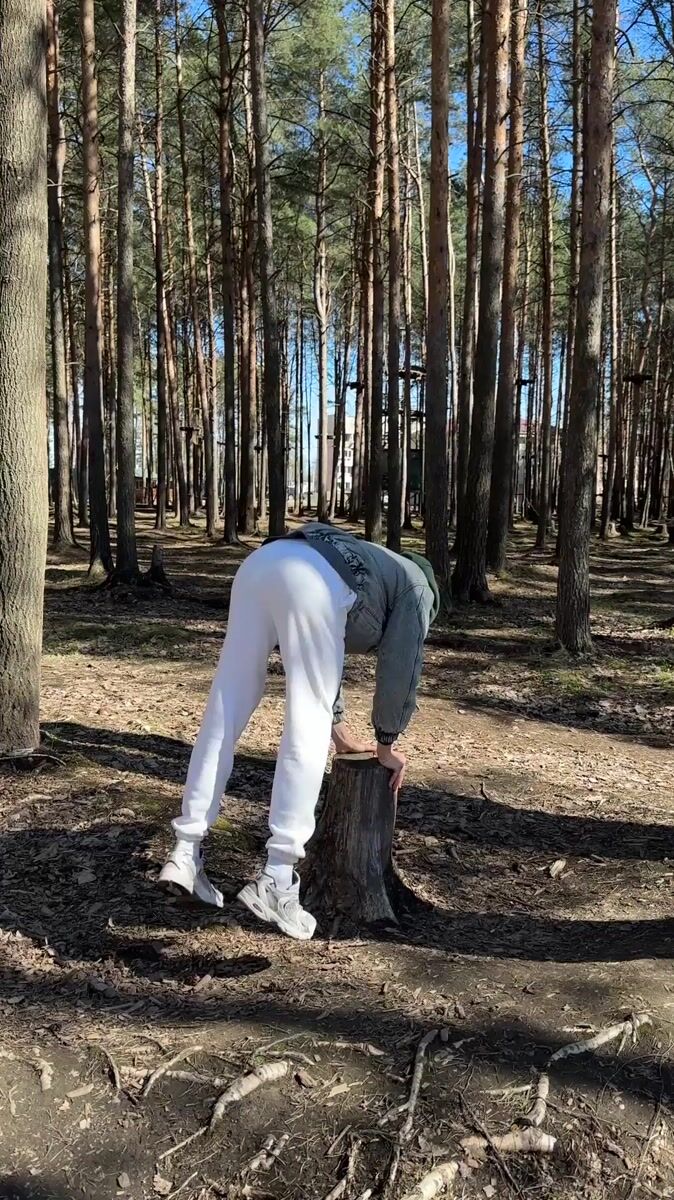 Person exercises and relaxes in Russian pine forestLocation: Murino, Russia4/19/20261 sources from 4 citizen journalistsTopics: handstand, pine forest, bridge sitting, exercise, forest relaxation, outdoor activity, nature, recreation, outdoor, daily lifeSource MediaPhoto source: 90b31511Photo source: fab13380Photo source: 75b88d51Photo source: 46ce7a87