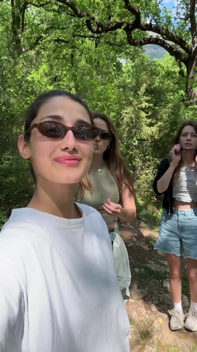 Topics: hiking selfie, forest trail, summer hiking, recreational hiking, outdoor activity, friendship, nature trail, tourism, leisure, outdoor