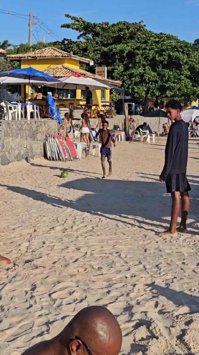 Children play with coconut on Búzios beach