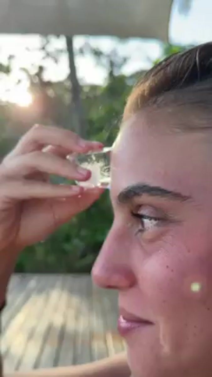 Topics: ice cooling, brazilian flag, beach scene, heat relief, coastal activity, summer behavior, beach life, recreation, daily life, outdoor