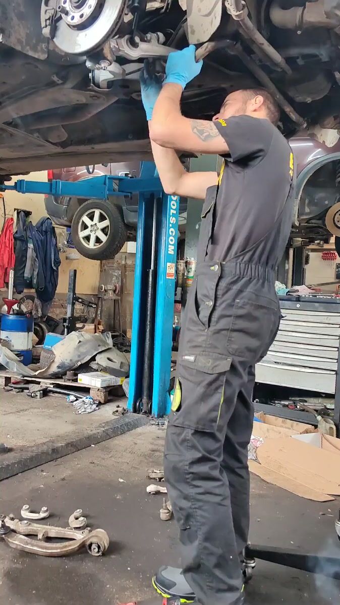 Topics: car maintenance, hydraulic lift, auto mechanic, repair shop, vehicle service, automotive, workshop, technical work, industrial, daily life