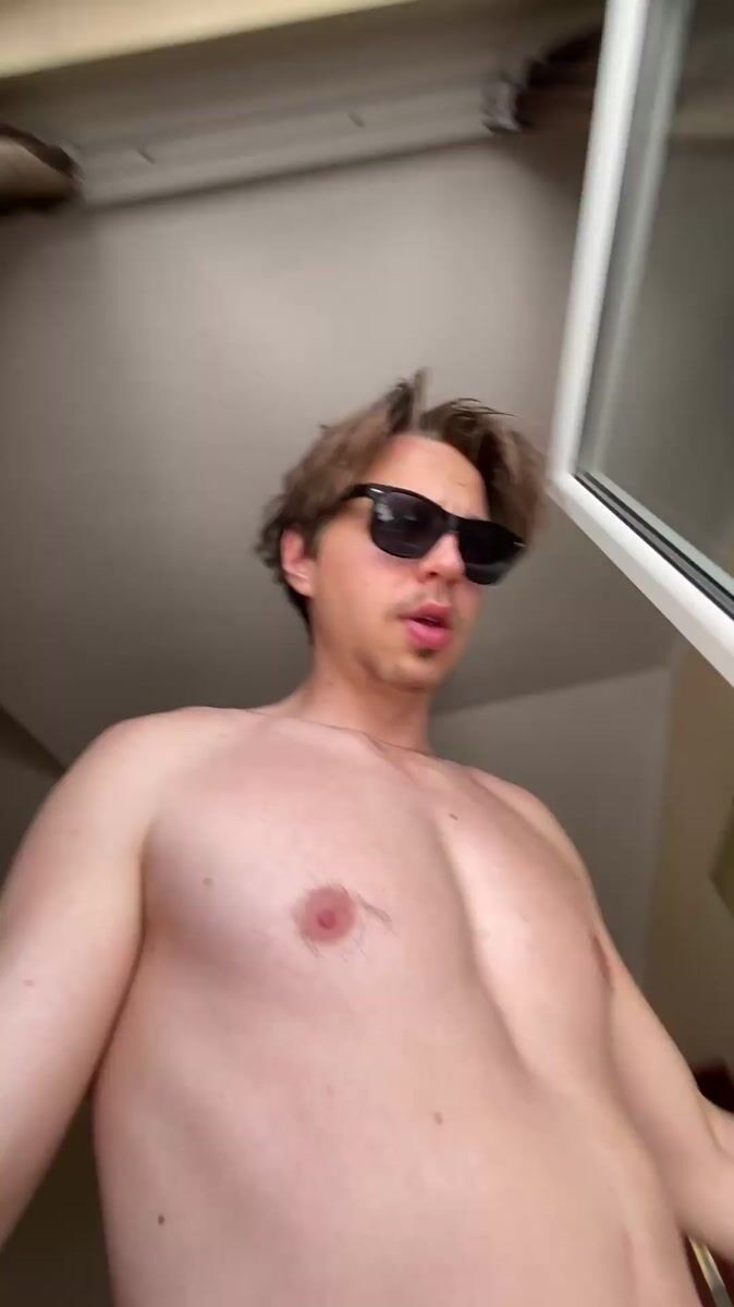 Topics: shirtless selfie, balcony pose, adriatic coast, vacation content, social media, coastal tourism, personal lifestyle, travel, mediterranean, daily life