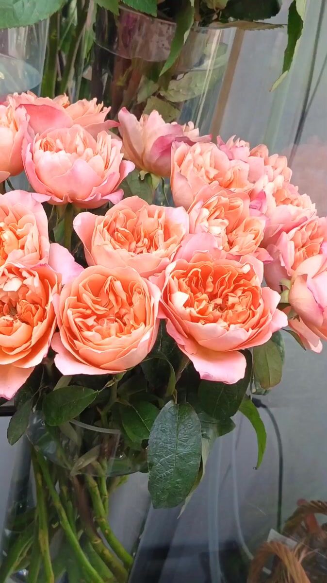 Topics: rose bouquet, flower display, pink roses, floral arrangement, flower shop, retail display, commercial, lifestyle, urban, daily life