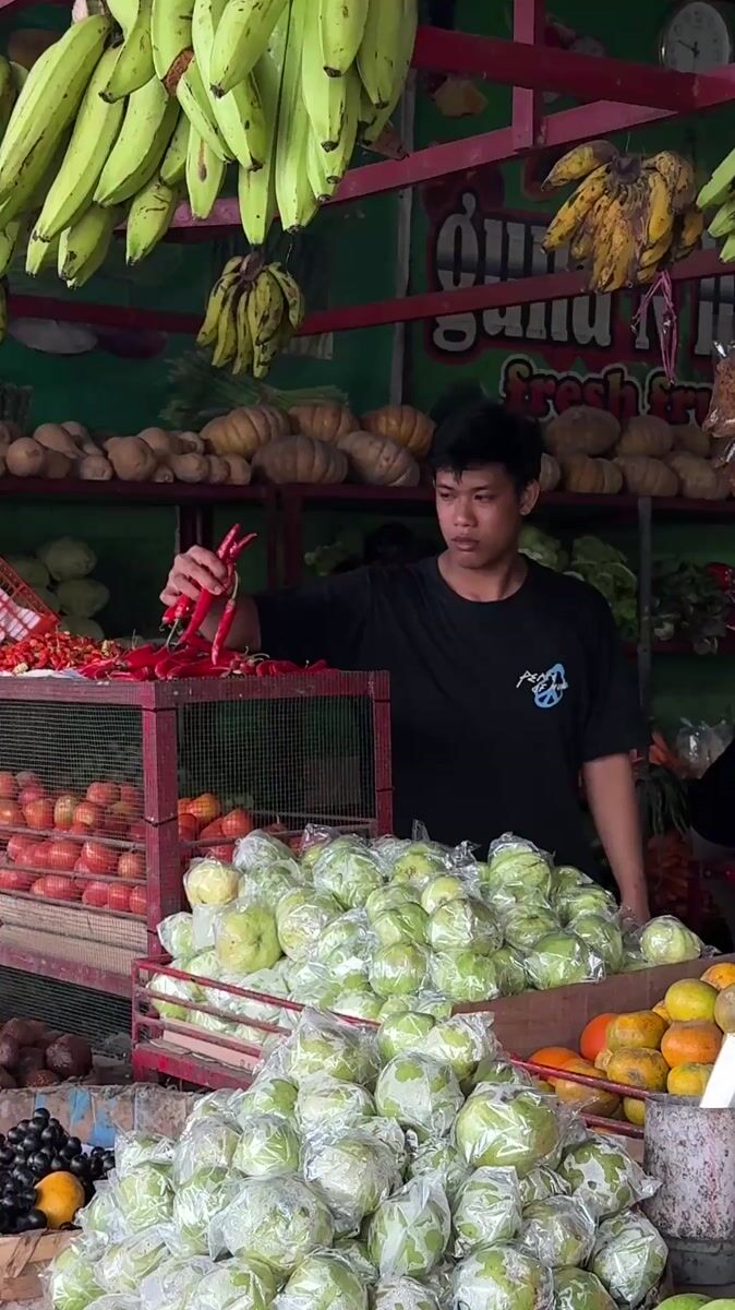 Topics: fruit vendor, night market, rose apple, produce stall, street commerce, market activity, vendor work, commercial, nightlife, daily life