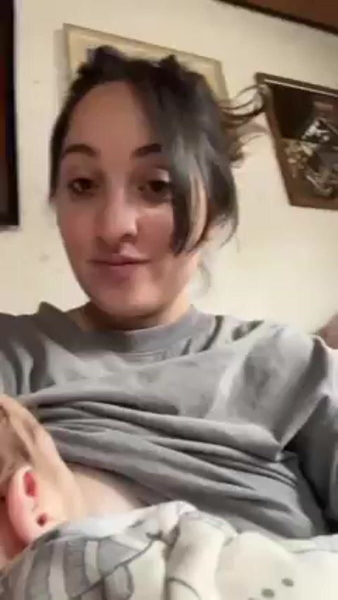 Topics: baby care, breastfeeding, diaper change, morning routine, domestic activity, household task, wood stove, daily life, family, home