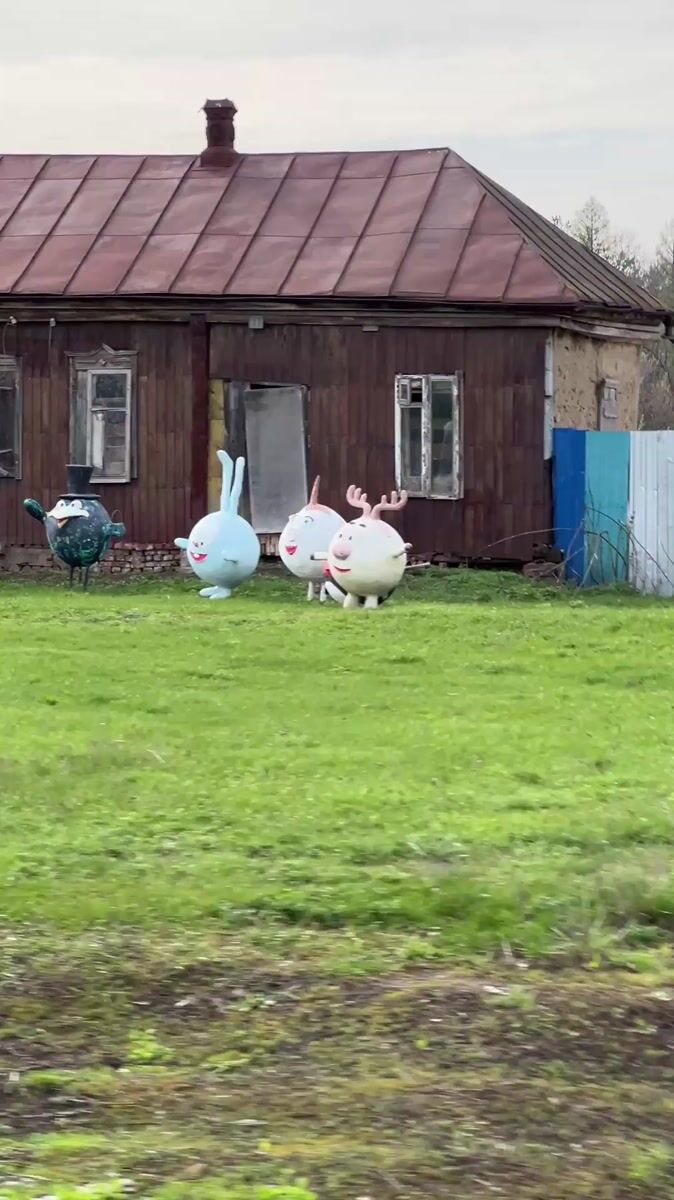 Rural Russian homes display colorful animal, cartoon lawn ornaments