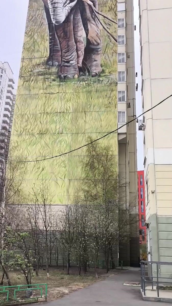 Topics: elephant mural, building facade, street art, public art, residential building, urban art, helicopter, architecture, urban, visual culture