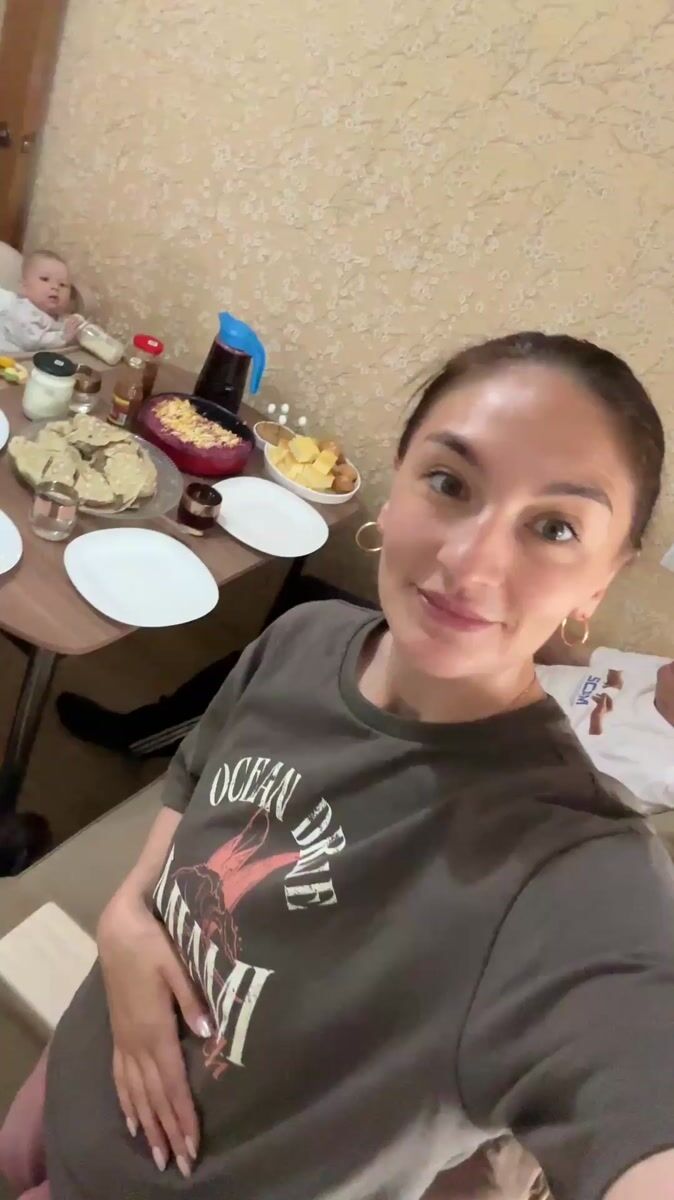 Topics: family meal, food preparation, home dining, baby feeding, dough rolling, family gathering, cooking, domestic life, family, social