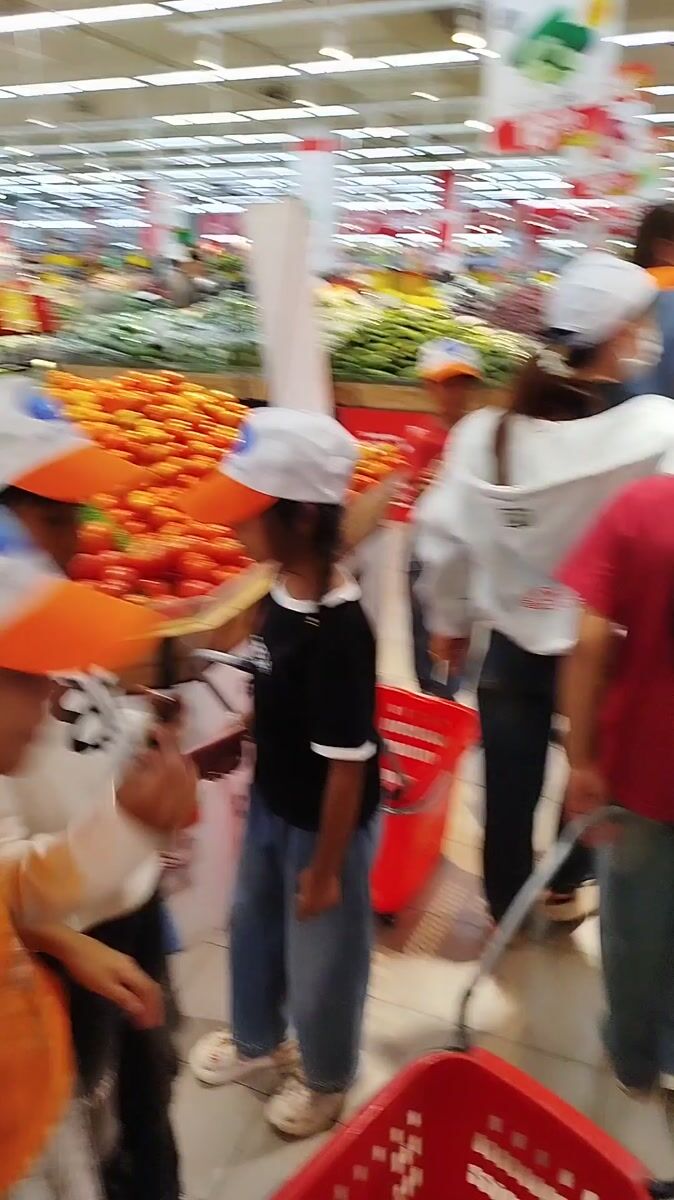 Topics: supermarket interior, morning shopping, children shopping, grocery store, family activity, retail space, commercial, daily life, urban, social