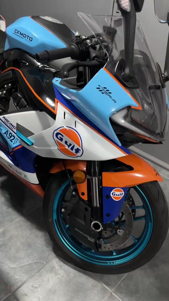 Topics: custom motorcycle, gulf racing, indoor parking, motorcycle, racing livery, vehicle, automotive, hobby, indoor, lifestyle
