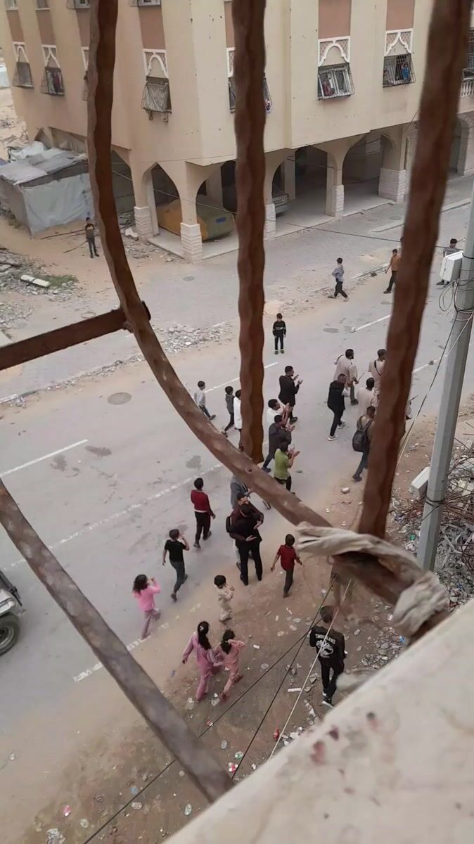 Community gathering observed in Khan Yunis amid urban destruction