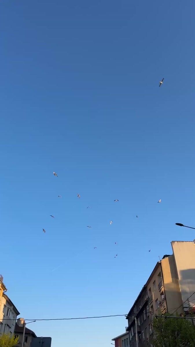 Seagulls spotted flying over Sofia's clear skiesLocation: Sofia, Bulgaria4/19/20261 sources from 8 citizen journalistsTopics: seagull, clear sky, bird flight, wildlife, urban nature, street scene, animal, outdoor, urban, daily lifeSource MediaPhoto source: 1da8a568Photo source: 34cde684Photo source: c02870c1Photo source: 9c502c8dPhoto source: fe69df48Photo source: 129908dc