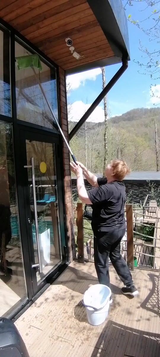Topics: window cleaning, household chore, morning activity, domestic work, daily routine, residential, maintenance, daily life, urban, social