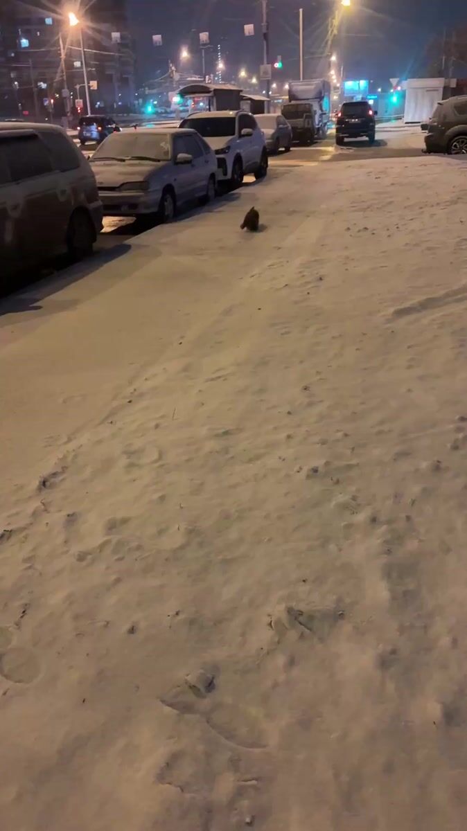 Topics: dog behavior, pet footage, snow scene, animal, domestic, outdoor winter, indoor comfort, evening activity, daily life, urban