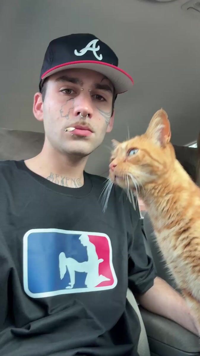 Tattooed driver with orange cat spotted in Villa General Belgrano